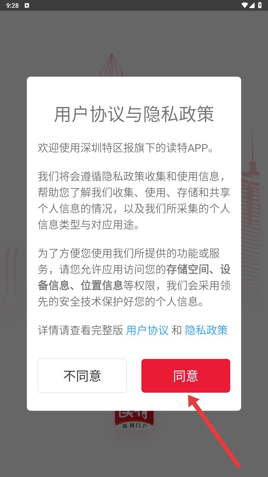 1、進(jìn)入軟件之后,會(huì)跳出服務(wù)協(xié)議,需要認(rèn)真閱讀軟件給出的建議后點(diǎn)擊同意并繼續(xù)下一步。