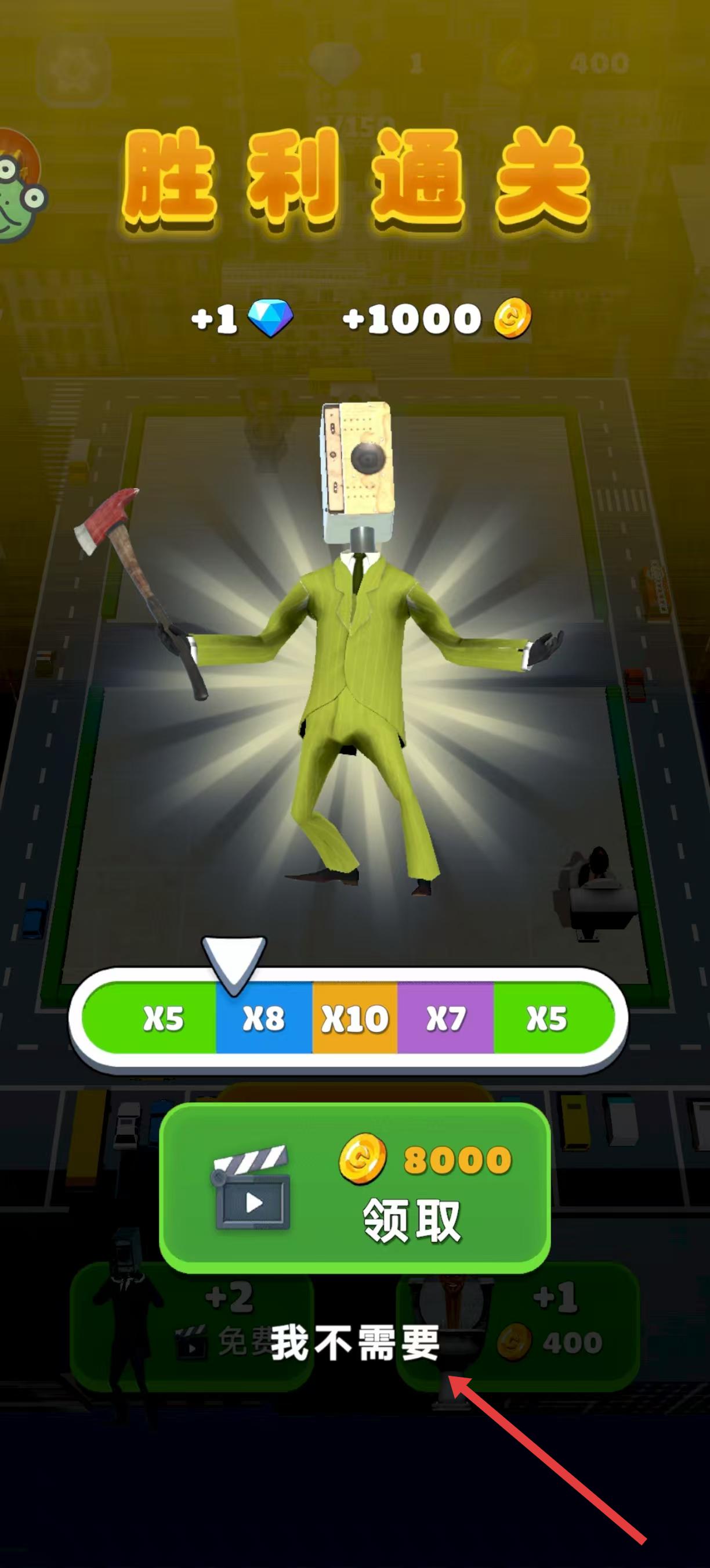 3、對抗結(jié)束后,界面顯示勝利通關(guān),能獲得鉆石、金幣等獎勵,可根據(jù)需求選擇領(lǐng)取獎勵的方式,繼續(xù)后續(xù)操作。