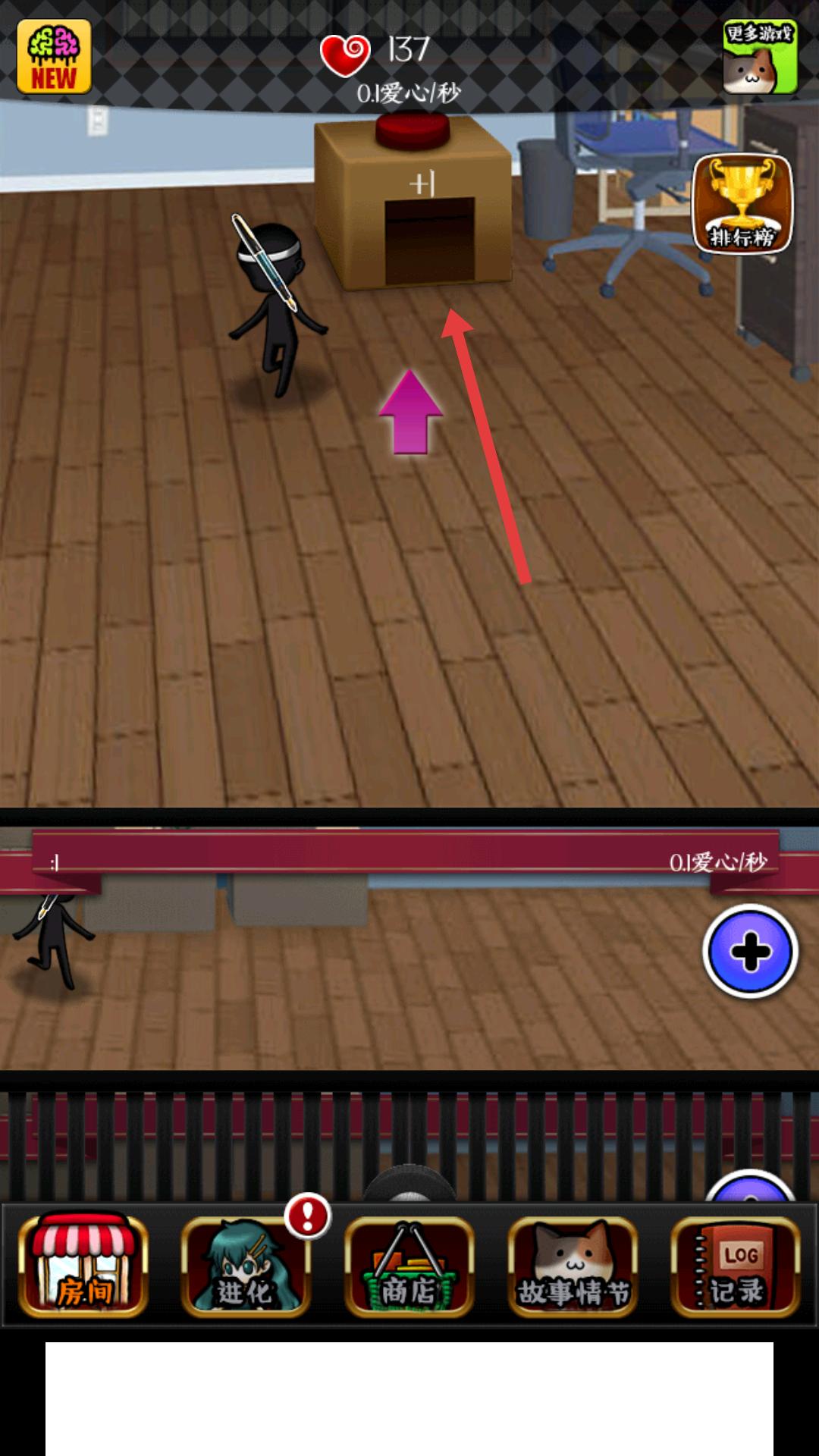 4、點擊裝置后,會有小人出現(xiàn),此時可操控小人移動,靠近裝置,通過與裝置互動,持續(xù)獲取愛心值,提升愛心值的積累速度。
