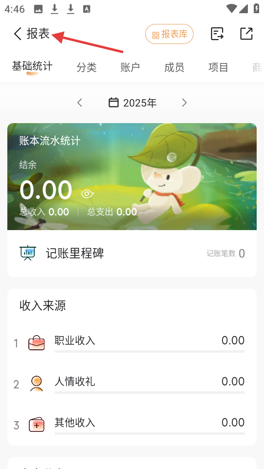 4、報表頁面從多維度統(tǒng)計分析,呈現(xiàn)賬本流水及收入來源數(shù)據(jù),直觀展示財務狀況,幫助用戶掌握和規(guī)劃個人財務。