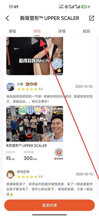 3、在課程詳情頁可切換到評價標(biāo)簽,查看其他用戶的評價,若想預(yù)約課程,點擊登錄約課按鈕,進入登錄頁面。