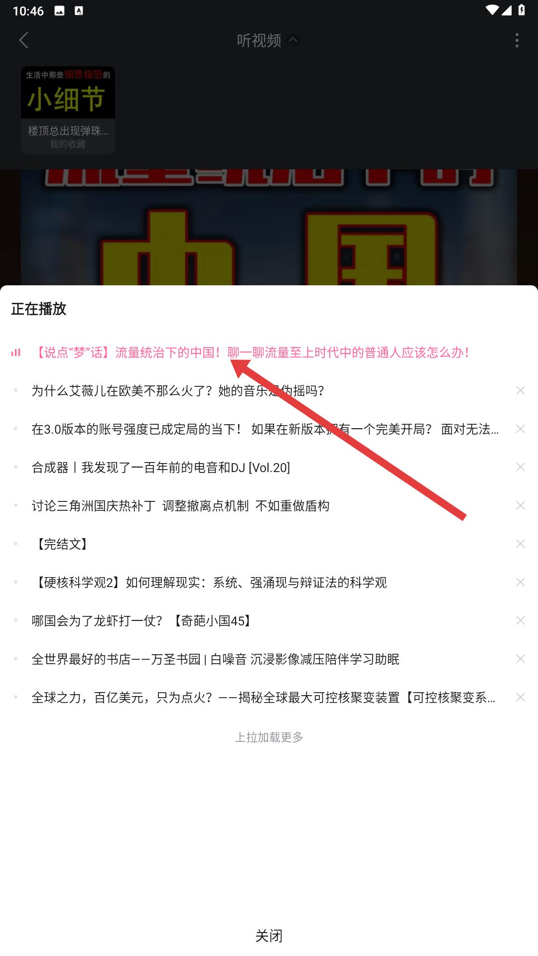 4、播放列表中,能看到正在播放的視頻以及其他可播放的視頻,方便選擇想聽的內(nèi)容。