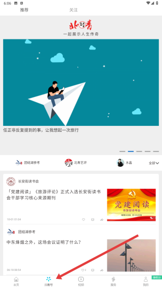 4、在APP底部點擊推薦,進(jìn)入推薦頁面,可瀏覽各類推薦內(nèi)容,如文化、資訊類內(nèi)容等,獲取感興趣的信息。