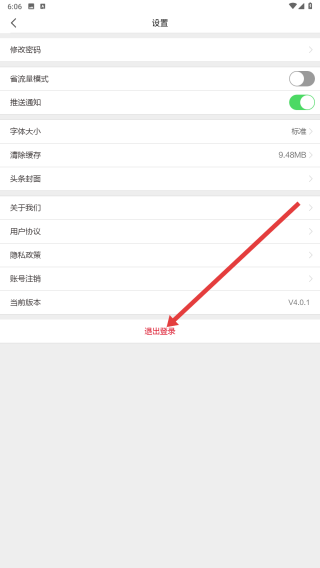 3、進(jìn)入設(shè)置頁面,可進(jìn)行修改密碼、調(diào)整字體大小等操作,也可點擊退出登錄,退出當(dāng)前賬號。