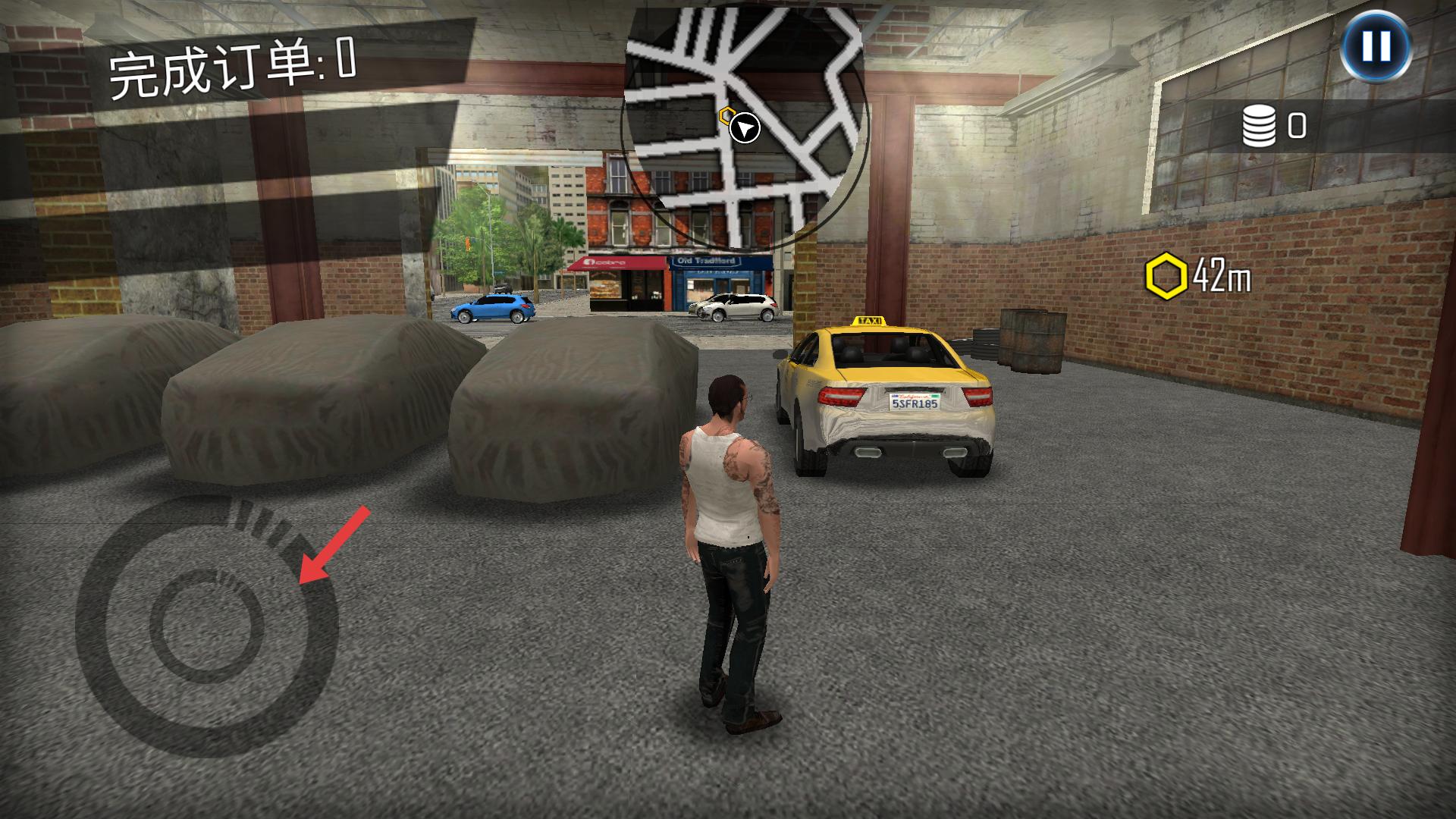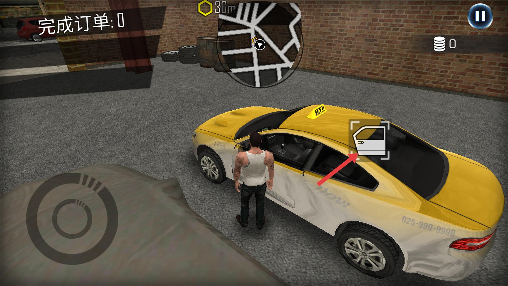 2、進入車庫場景后,通過左下角的操控按鈕,控制角色移動,靠近出租車,準備進行后續(xù)操作。