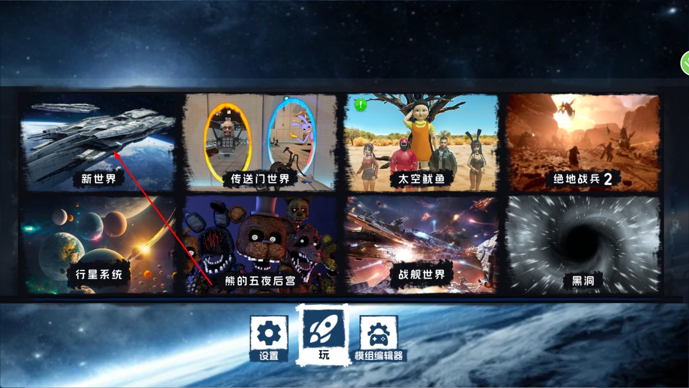 1、進(jìn)入游戲后,可在新世界、傳送門世界等多個(gè)場(chǎng)景選擇,點(diǎn)擊對(duì)應(yīng)場(chǎng)景就能開啟專屬的星際冒險(xiǎn)之旅,探索不同的宇宙區(qū)域。
