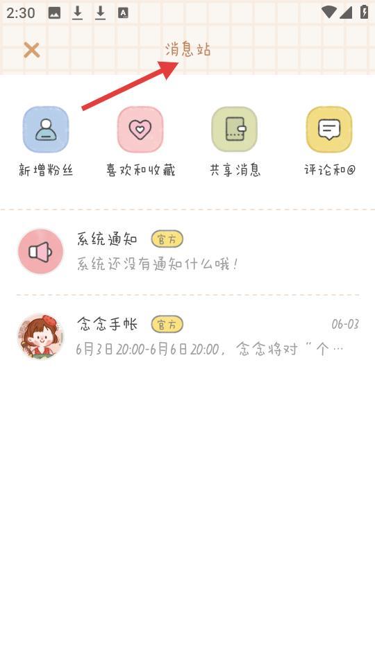 3、點(diǎn)擊消息站頁面,整合新增粉絲、喜歡收藏等互動(dòng)信息及系統(tǒng)通知,方便用戶及時(shí)了解平臺(tái)動(dòng)態(tài)。