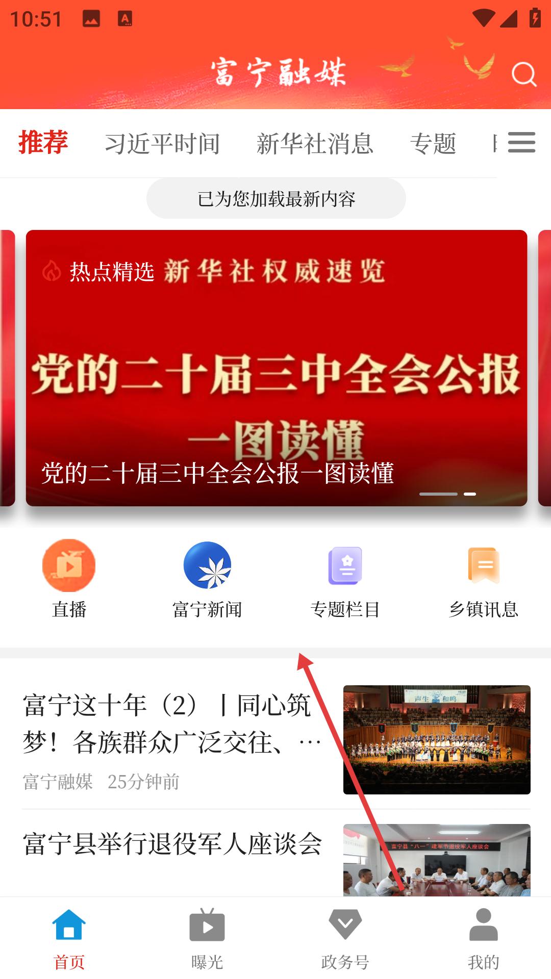 2、在首頁(yè)有許多不同的板塊,比如富寧新聞,專題欄目,鄉(xiāng)鎮(zhèn)訊息等內(nèi)容,用戶可以根據(jù)需求選擇不同的板塊。
