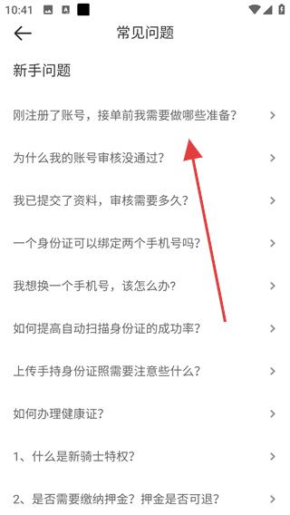 3、在常見問題頁面找到新手問題板塊,選擇感興趣的新手問題,比如剛注冊賬號接單前的準(zhǔn)備點擊該問題。