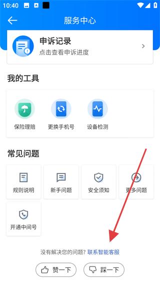 1、進入服務(wù)中心頁面,在頁面下方找到聯(lián)系智能客服選項,點擊該選項,進入客服對話界面。