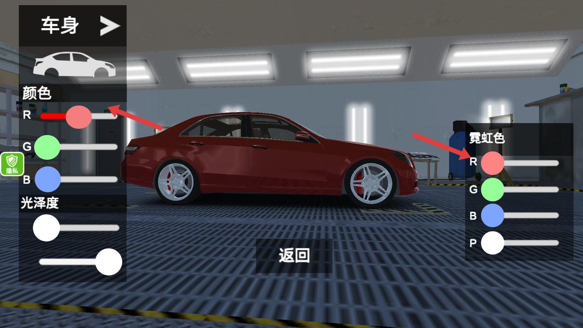 2、在車身設(shè)置界面,可調(diào)節(jié)車身顏色的R、G、B數(shù)值,還能調(diào)整光澤度,打造個(gè)性化車身外觀。