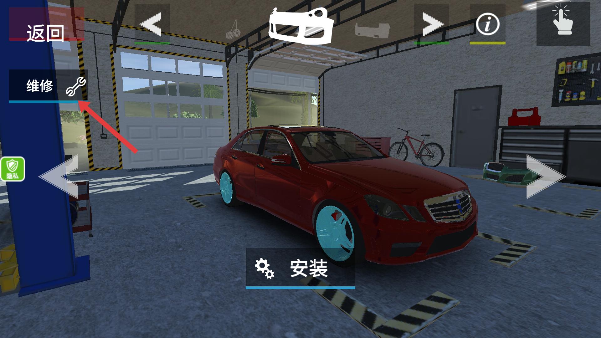 4、汽車若有損壞,在維修界面,點(diǎn)擊維修選項(xiàng),可對(duì)汽車進(jìn)行修復(fù),保障汽車性能,之后還能進(jìn)行安裝操作。