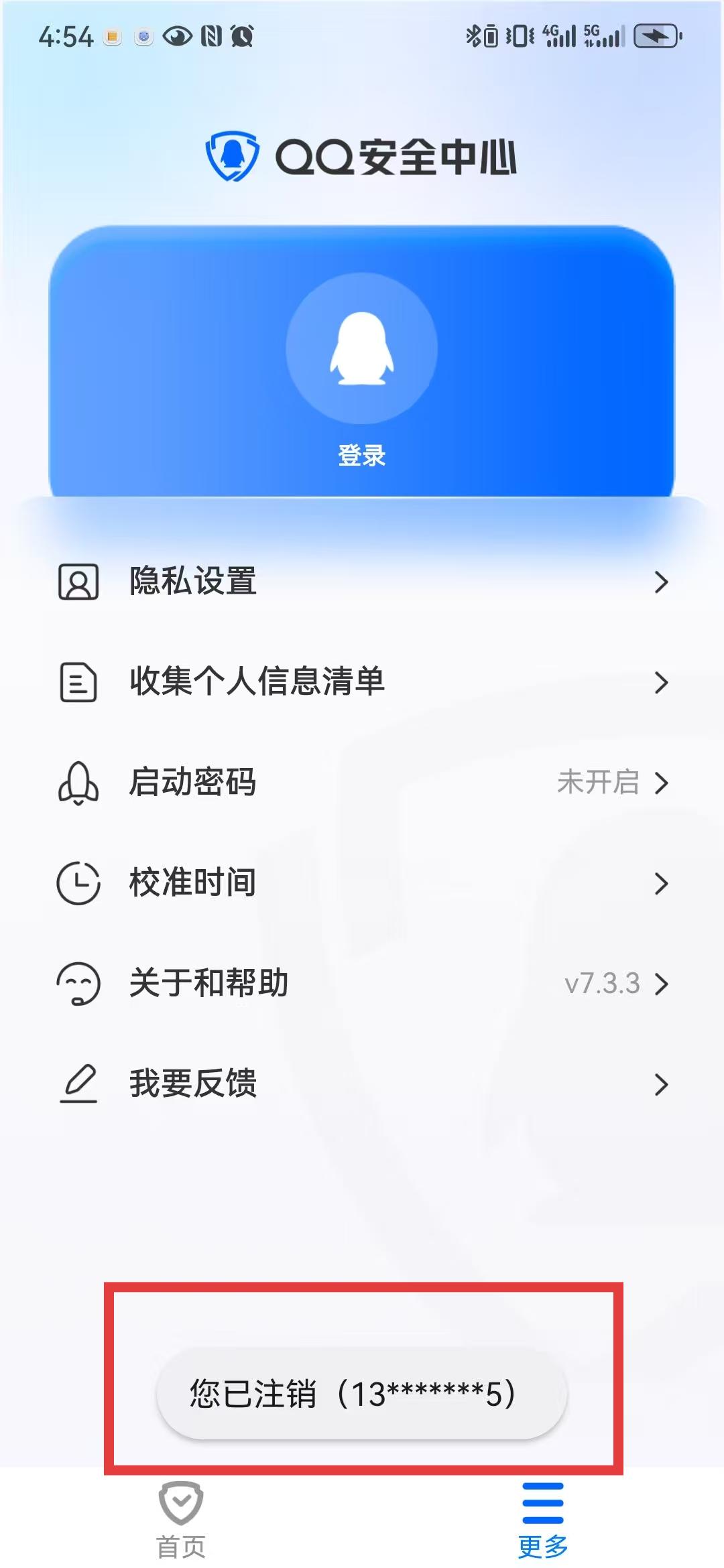 1、打開QQ安全中心進入更多頁面,找到退出注銷選項并點擊開啟注銷流程,這一步是進入注銷操作的入口,點擊后可進行后續(xù)手機號關(guān)聯(lián)賬號的注銷設(shè)置。