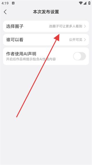 4、在本次發(fā)布設(shè)置界面,可選擇合適的圈子,讓更多人看到帖子,也能設(shè)置誰可以看的權(quán)限,設(shè)置完成后,即可發(fā)布帖子。