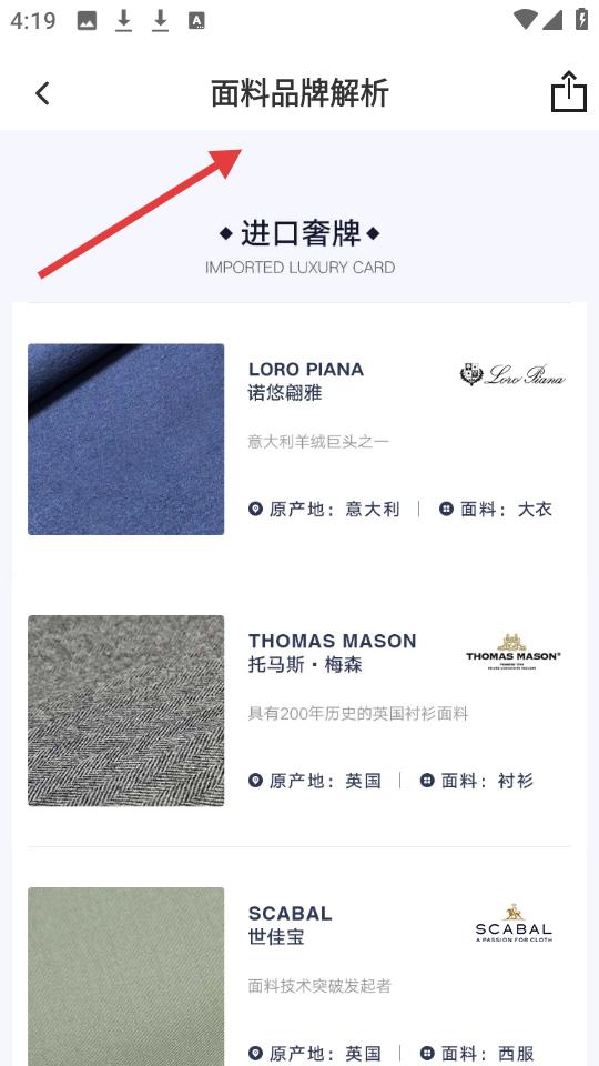 2、點(diǎn)擊面料品牌解析頁,聚焦進(jìn)口奢牌,介紹LORO PIANA等國際知名面料品牌,含產(chǎn)地及適用面料。