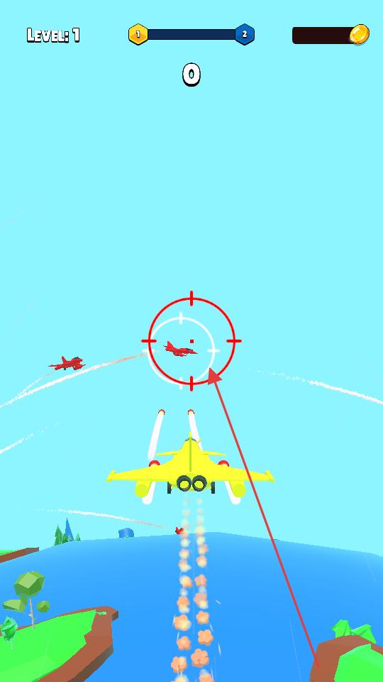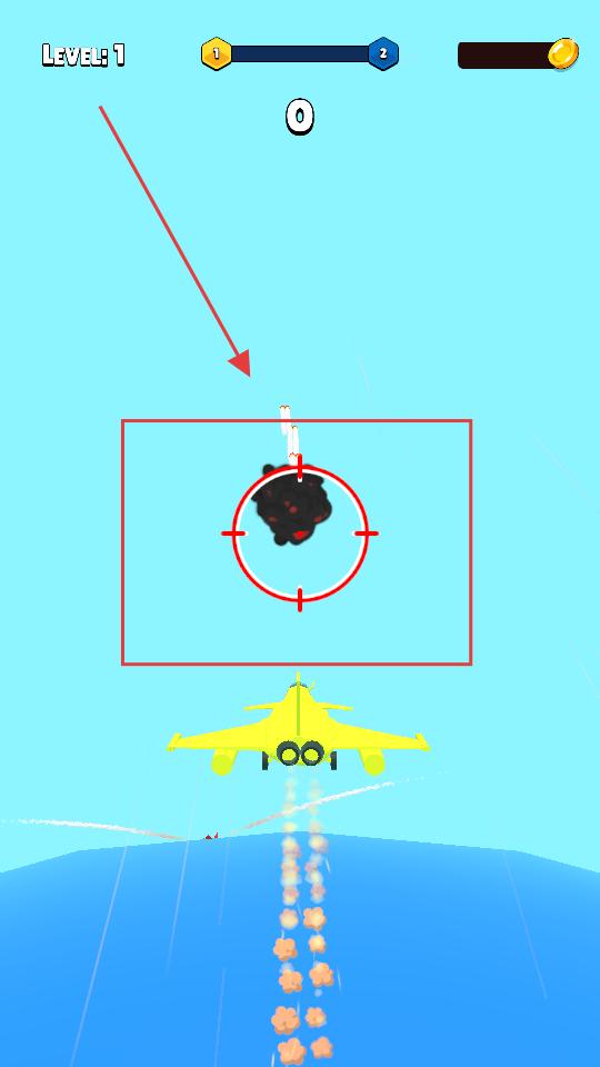 2、飛行過程中遇到煙霧的空中目標(biāo),調(diào)整飛機(jī)角度,躲開煙霧,界面的瞄準(zhǔn)框會(huì)對(duì)準(zhǔn)目標(biāo)。