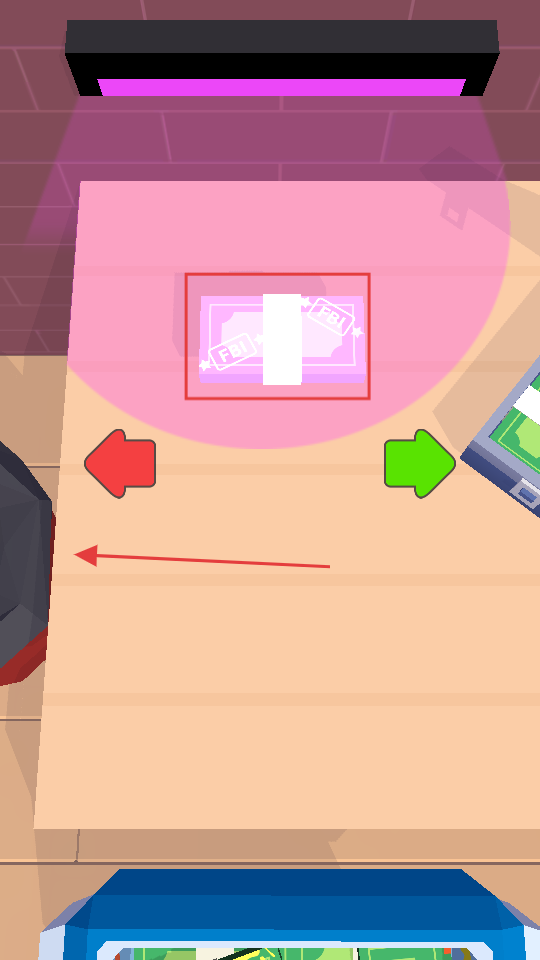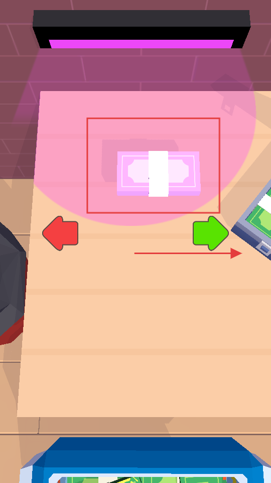 3、繼續(xù)處理鈔票,有文字血液的往左邊紅色箭頭移動,確認其狀態(tài),確保通過驗證,為獲取獎勵或進入下一環(huán)節(jié)奠定基礎。
