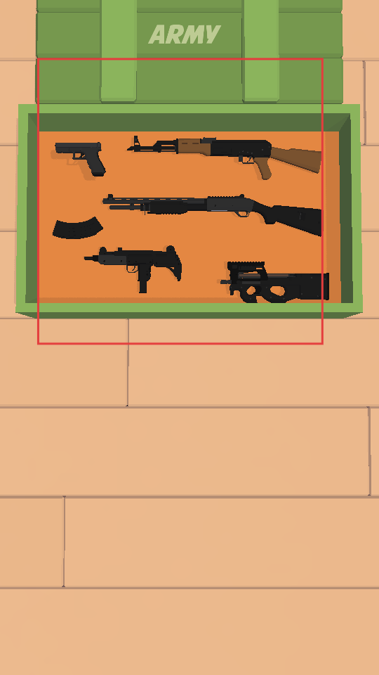 4、將四周散亂的槍械,整齊的放入提前準備好的箱子中,需要合理分配位置哦,不然放不進去。