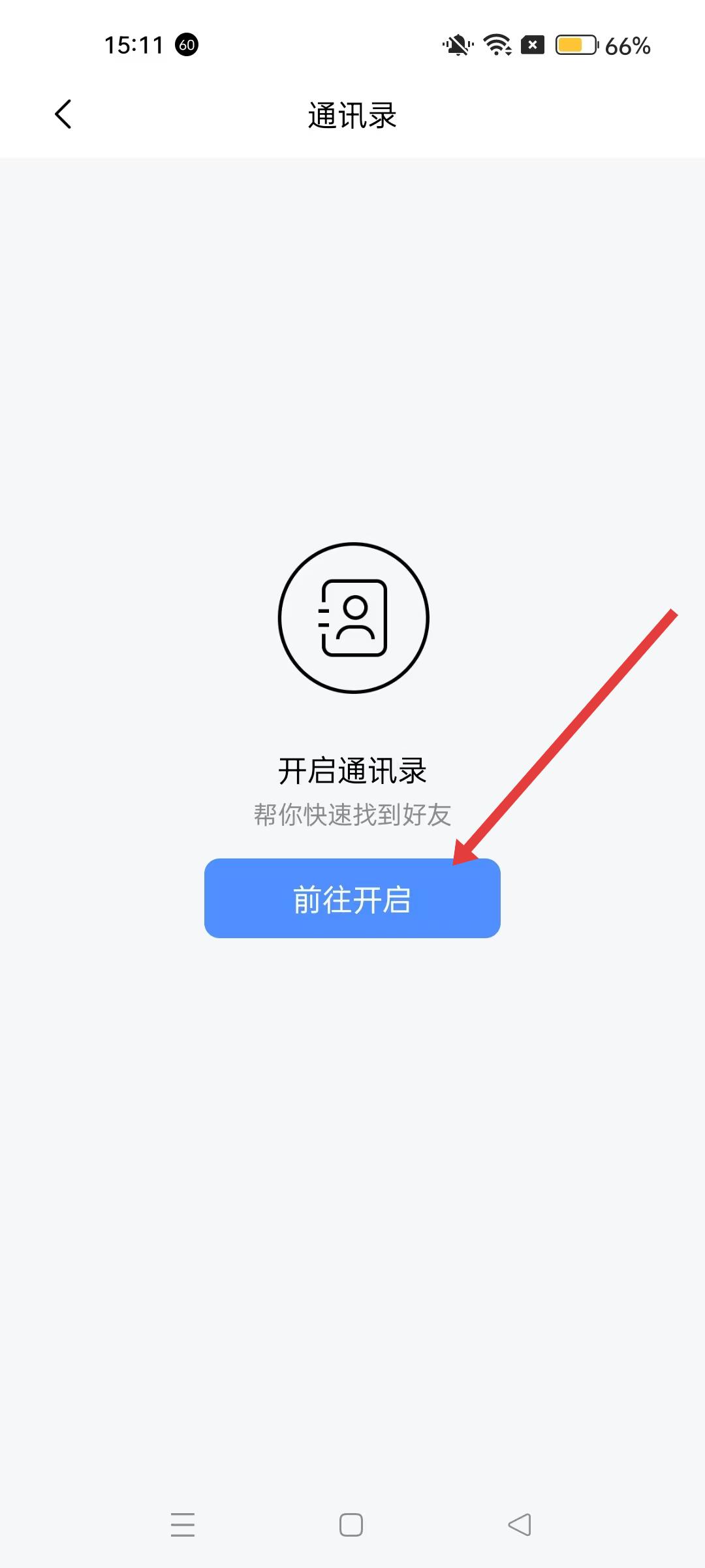 4、通訊錄頁(yè)面點(diǎn)擊前往開(kāi)啟按鈕,開(kāi)啟通訊錄后即可查找并添加手機(jī)聯(lián)系人中的好友。