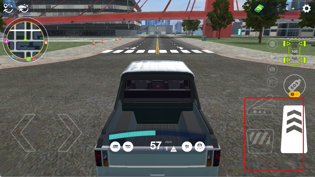1、進(jìn)入游戲后,通過右側(cè)的加速等按鈕操控車輛行駛,在城市道路自由移動(dòng),準(zhǔn)備迎接停車任務(wù)。