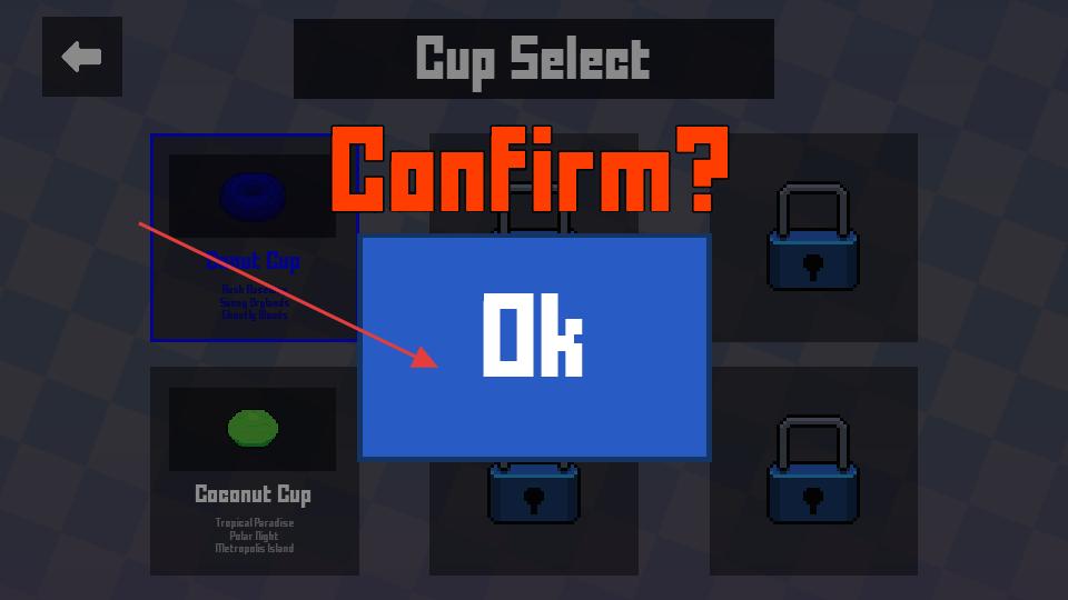 4、在Confirm提示框中點(diǎn)擊Ok按鈕,確認(rèn)杯賽選擇,隨后進(jìn)入卡丁車比賽場(chǎng)景,開始復(fù)古卡丁車的沖刺競(jìng)賽。
