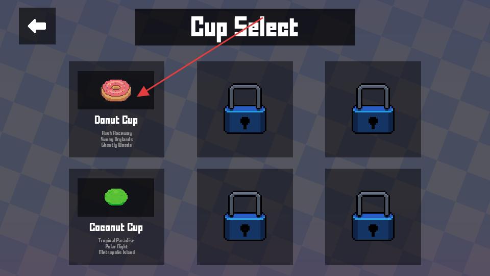 3、進(jìn)入杯賽選擇界面,點(diǎn)擊可選擇的DonutCup杯賽,該杯賽對(duì)應(yīng)特定賽道場(chǎng)景,選擇后彈出確認(rèn)提示框。