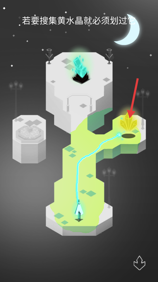 3、如果想要搜集黃水晶,在繪制路線的過程中就必須劃過黃水晶,按照這樣的方式操作,才能成功獲取到黃水晶。