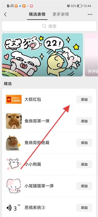 1、進入微信精選表情頁面,找到大額紅包表情,點擊添加將該表情添加到微信表情庫中。