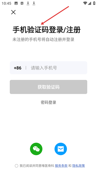 1、登錄頁(yè)支持手機(jī)驗(yàn)證碼登錄,未注冊(cè)手機(jī)號(hào)自動(dòng)注冊(cè),也可密碼登錄或選微信、郵箱登錄,需同意相關(guān)條款政策。