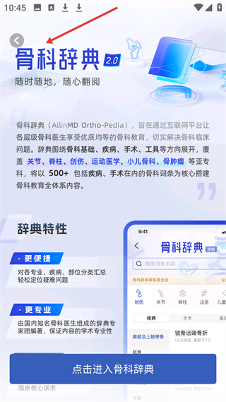 4、骨科辭典頁(yè),通過(guò)互聯(lián)網(wǎng)提供骨科教育,圍繞基礎(chǔ)、疾病等方向,涵蓋多亞專(zhuān)科,以500詞條搭建骨科教育體系。