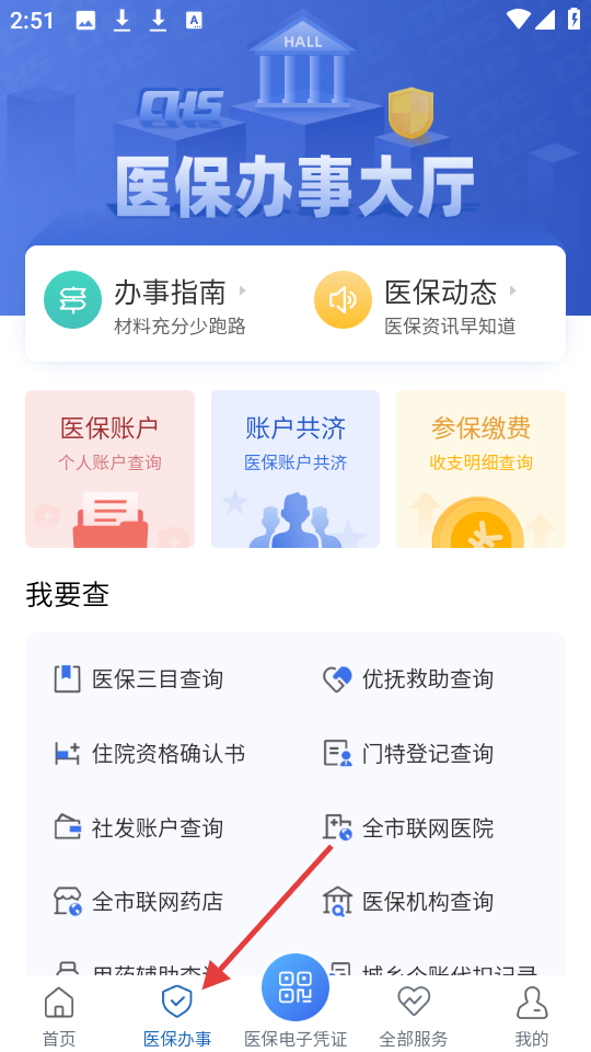 3、醫(yī)保辦事大廳含辦事指南與醫(yī)保動態(tài),能進行醫(yī)保賬戶、參保繳費等查詢,還有住院資格確認書等多項查詢服務。