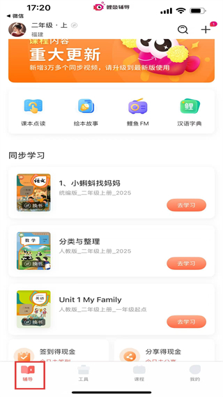 1、輔導(dǎo)界面針對(duì)福建二年級(jí)上冊(cè),含語(yǔ)數(shù)英同步學(xué)習(xí),有課本點(diǎn)讀功能,新增3萬(wàn)同步視頻需升級(jí)才能使用。
