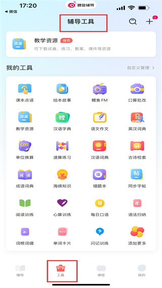 2、工具界面有教學(xué)資源、課本點(diǎn)讀、口算批改等工具,支持自定義管理,覆蓋多類學(xué)輔場(chǎng)景,滿足學(xué)習(xí)輔助需求。