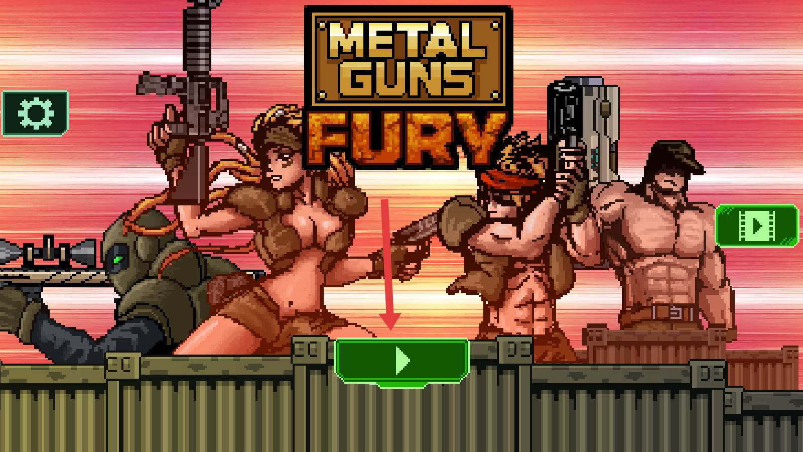 1、打開金屬槍狂怒,進(jìn)入佳作界面,看到持槍角色與綠色開始按鈕,點(diǎn)擊該按鈕,開啟游戲之旅,準(zhǔn)備接受任務(wù)挑戰(zhàn)。