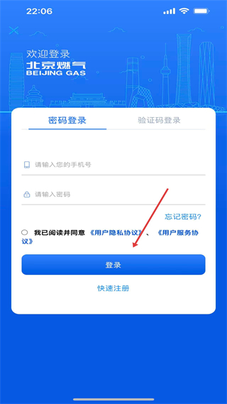 1、登錄頁有密碼登錄和驗證碼登錄兩種方式,需輸入手機號、密碼,勾選同意用戶隱私和服務(wù)協(xié)議后登錄,也可快速注冊。