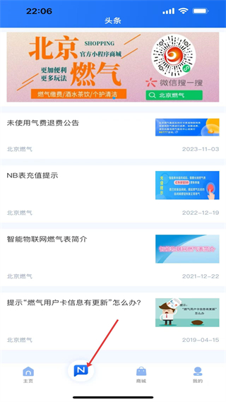 3、頭條頁展示未使用氣費退費公告、NB 表充值提示等新聞,可了解燃氣繳費、表具等相關(guān)資訊。