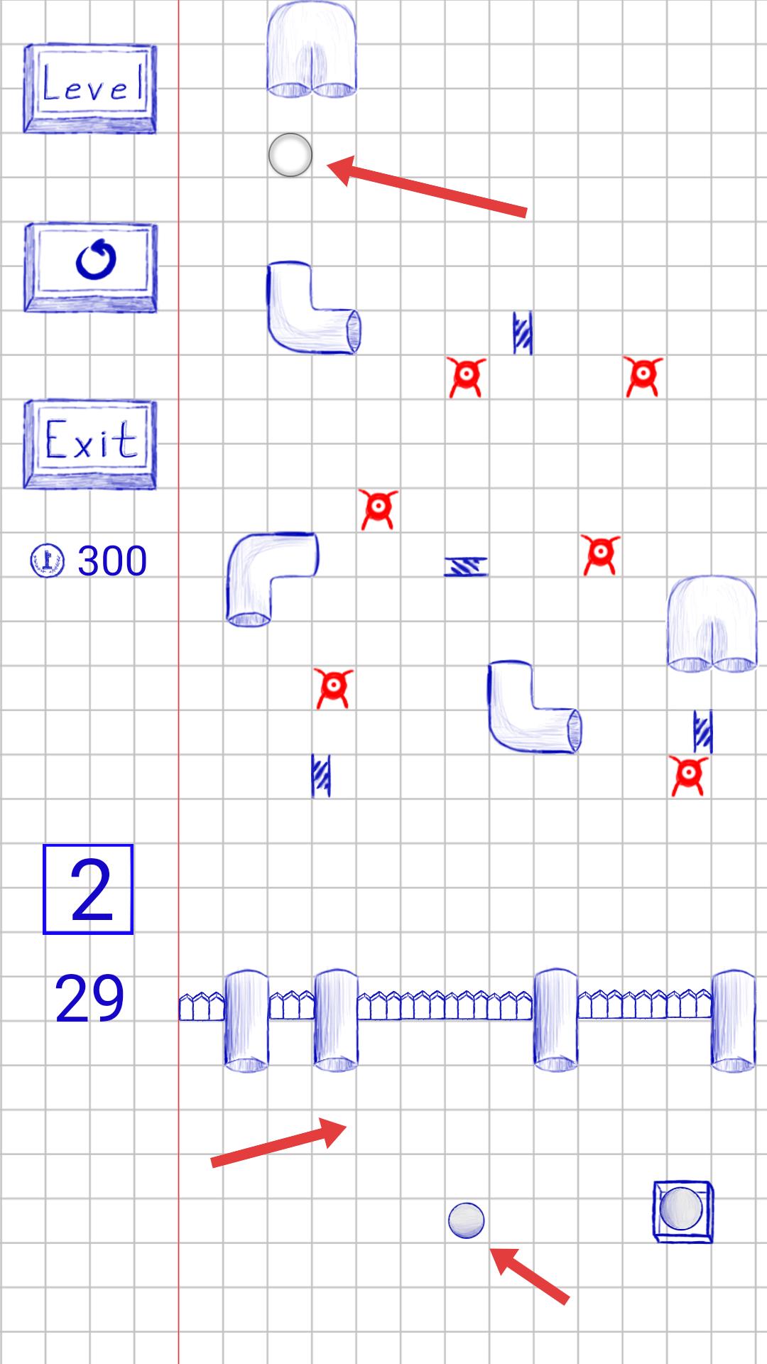 4、到了第二關(guān),場(chǎng)景更復(fù)雜,有多個(gè)管道和紅色機(jī)關(guān),要規(guī)劃小球移動(dòng)路徑,選擇正確管道,避開(kāi)機(jī)關(guān),到達(dá)目標(biāo)位置。
