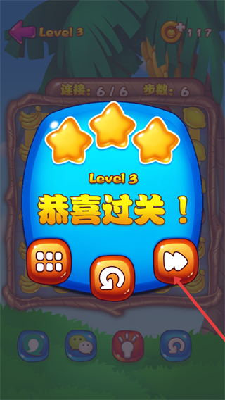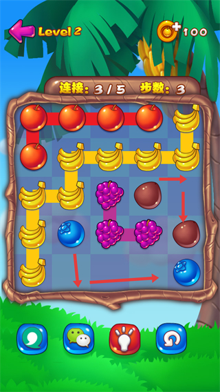 3、到Level3,水果布局更復(fù)雜,需要仔細(xì)觀察,找到相同水果的連接路徑,逐步完成連接目標(biāo),積累分?jǐn)?shù)。