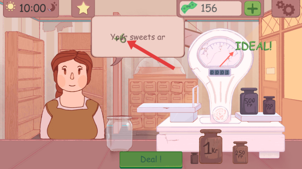 2、成功將甜品重量稱到合適范圍,天平顯示IDEAL,此時會有文字反饋,比如你看起來很甜相關(guān)內(nèi)容,完成交易。
