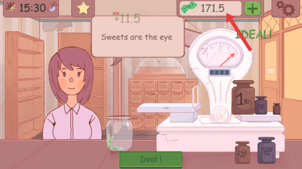 3、持續(xù)準確稱重,完成多筆交易后,會獲得收益,界面上方的金錢數(shù)值會增加,同時能看到IDEAL的成功提示。
