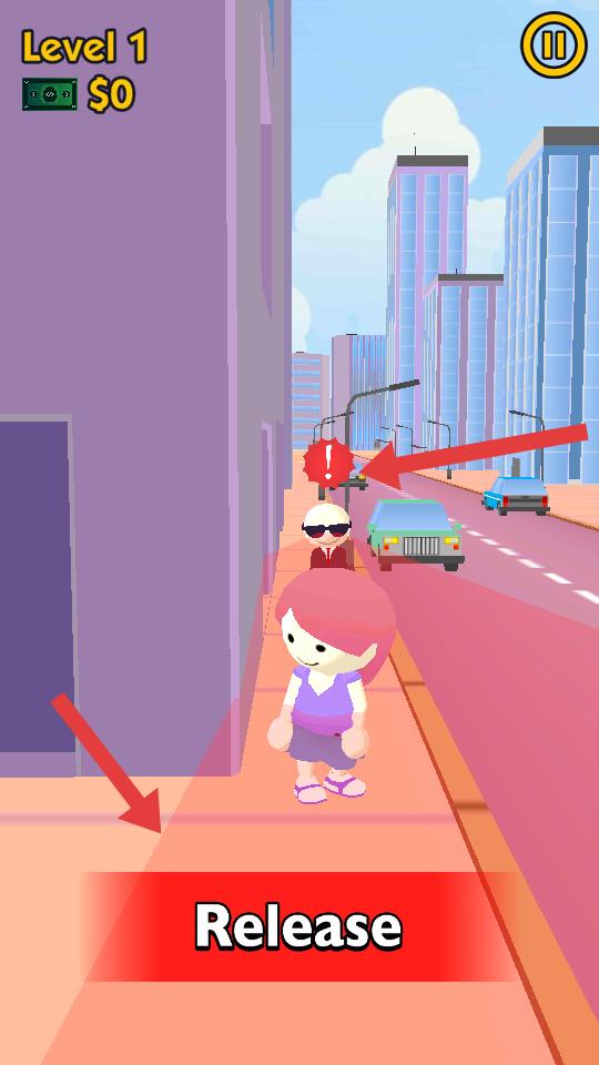 1、進(jìn)入游戲,在城市街道場(chǎng)景,看到目標(biāo)人物,點(diǎn)擊Hold按鈕,準(zhǔn)備進(jìn)行取錢操作,開(kāi)啟挑戰(zhàn)。