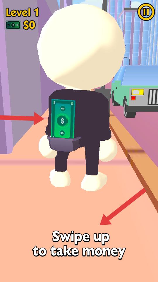 3、看到目標(biāo)人物身上的錢,按照提示向上滑動(dòng),成功取走錢,完成關(guān)鍵的取錢步驟。