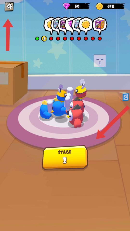 4、完成關(guān)卡后,界面會(huì)更新,顯示新的關(guān)卡,像STAGE2,同時(shí)還能看到鉆石,金幣數(shù)量變化,繼續(xù)點(diǎn)擊STAGE按鈕開啟新關(guān)卡戰(zhàn)斗。