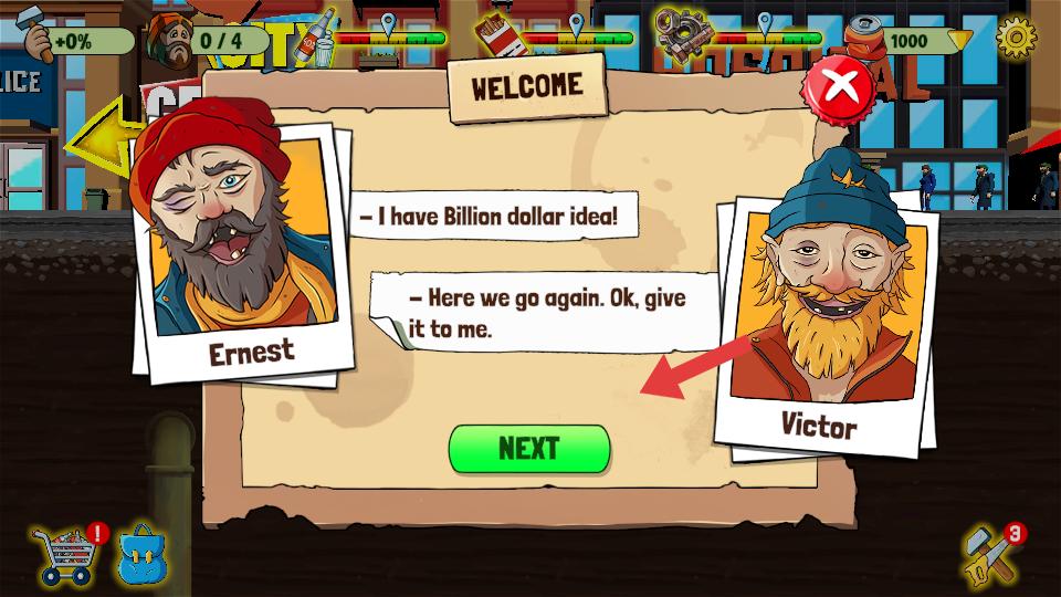 1、進(jìn)入游戲后,會(huì)看到帶有角色對(duì)話的歡迎界面,點(diǎn)擊NEXT按鈕,推進(jìn)游戲流程,進(jìn)入下一個(gè)界面。