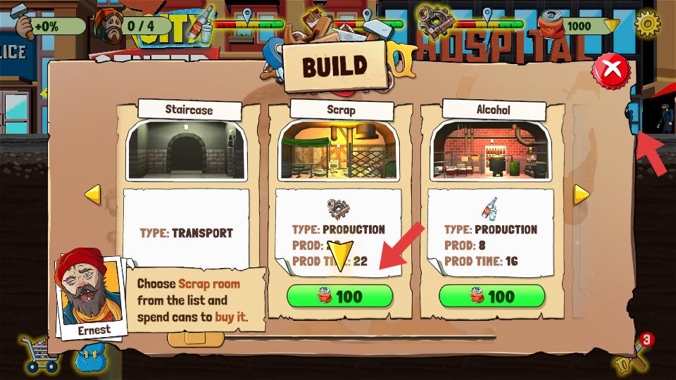3、BUILD界面中,找到Scrap相關(guān)選項(xiàng),點(diǎn)擊對(duì)應(yīng)的綠色按鈕,花費(fèi)指定數(shù)量的罐頭,就能購(gòu)買Scrap房間。