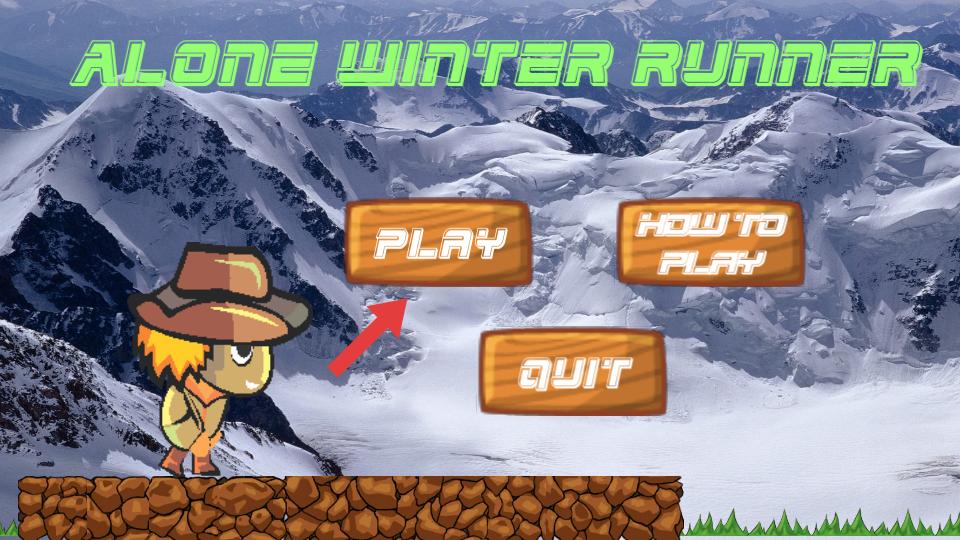 2、主界面有PLAY,HOW TO PLAY,QUIT按鈕,點(diǎn)擊PLAY就能開始游戲,操控角色到雪地場(chǎng)景中奔跑。