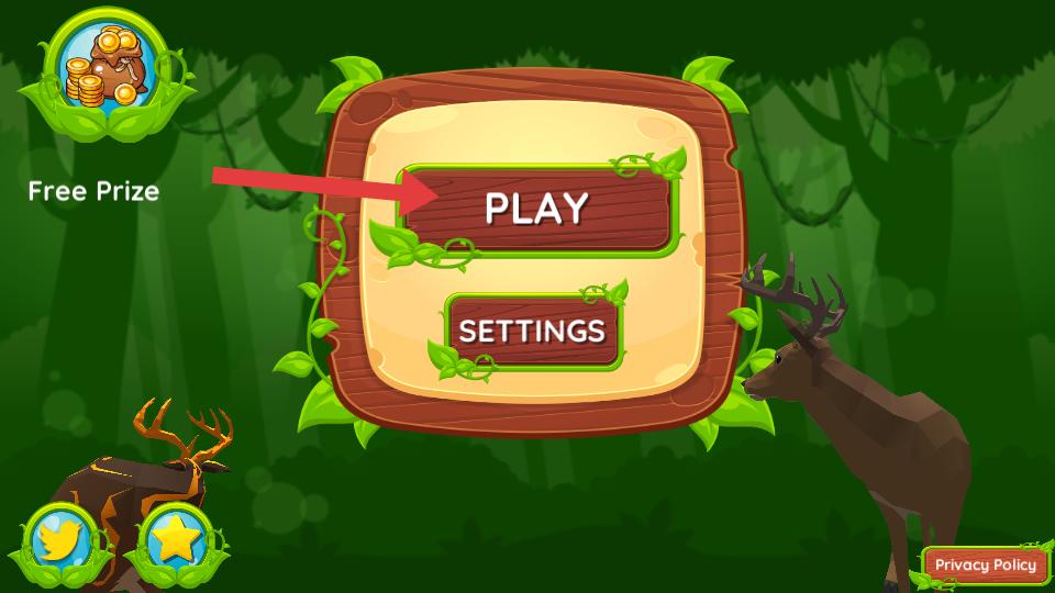 1、進(jìn)入游戲后,在初始界面找到PLAY按鈕,點擊該按鈕,就能開啟森林冒險之旅,進(jìn)入游戲的主場景。