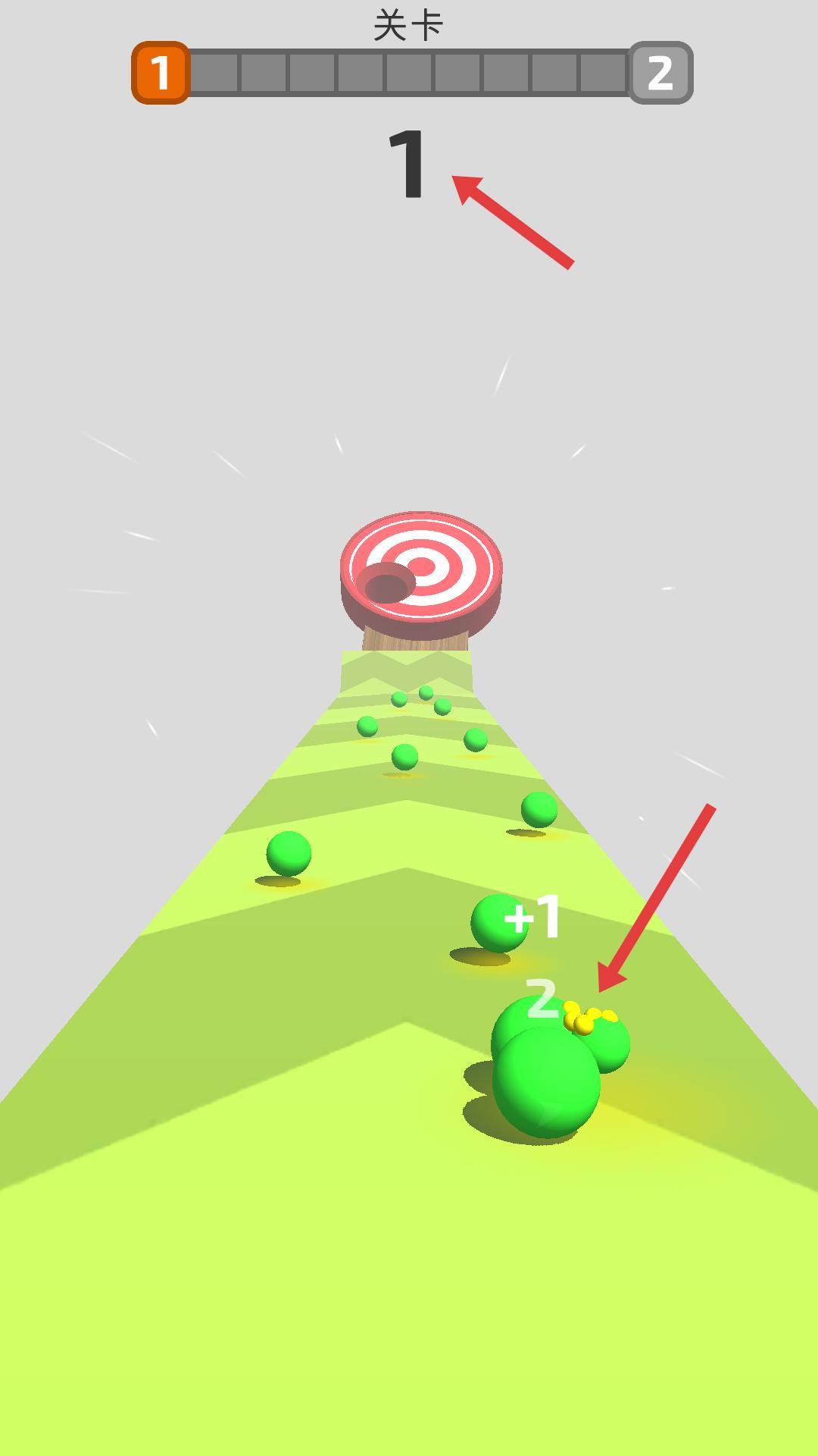 2、進(jìn)入關(guān)卡操控小球滾動(dòng),收集綠色小球能得分,上方數(shù)字會(huì)增加,要盡量多收集小球,積累分?jǐn)?shù),朝著靶心方向前進(jìn),逐步靠近目標(biāo)。