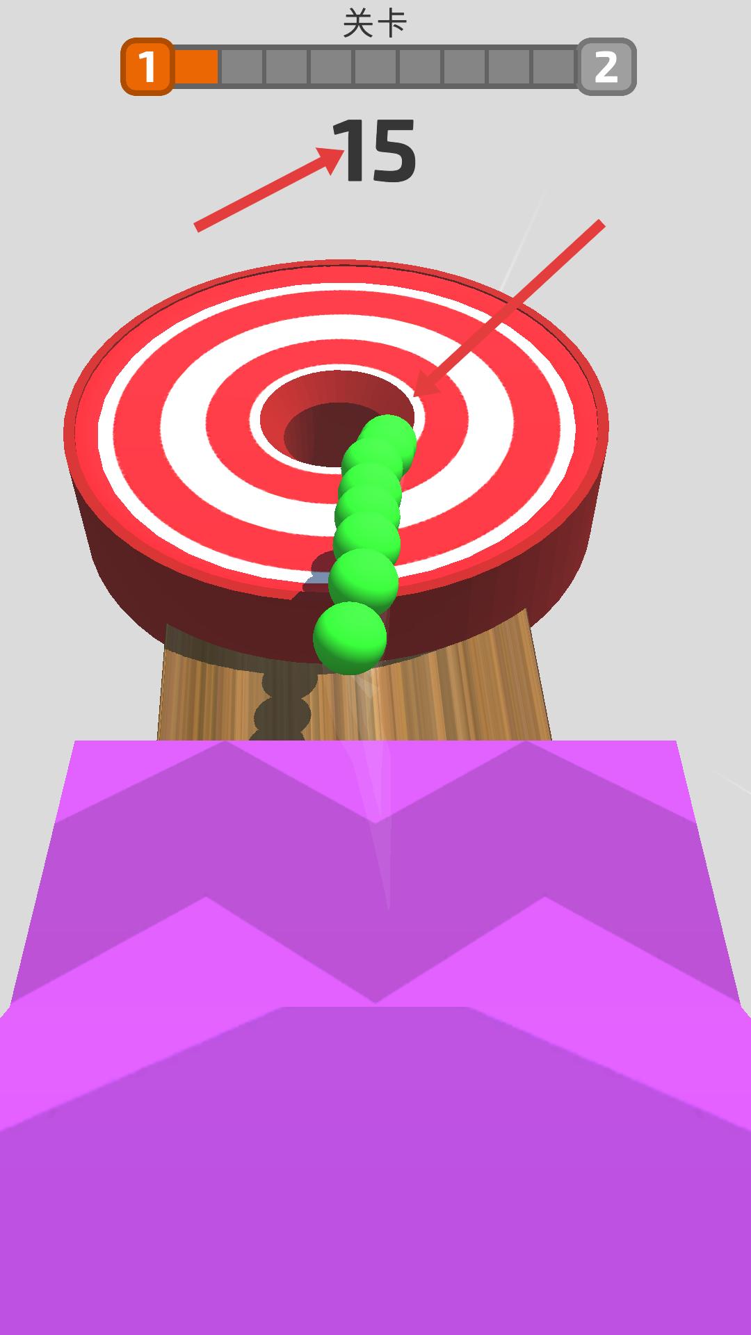 4、持續(xù)收集小球,讓小球連成串,進(jìn)入靶心洞口,此時(shí)上方分?jǐn)?shù)會(huì)大幅增加,關(guān)卡進(jìn)度條也會(huì)推進(jìn),努力讓更多小球進(jìn)入靶心,獲取更高分?jǐn)?shù)。
