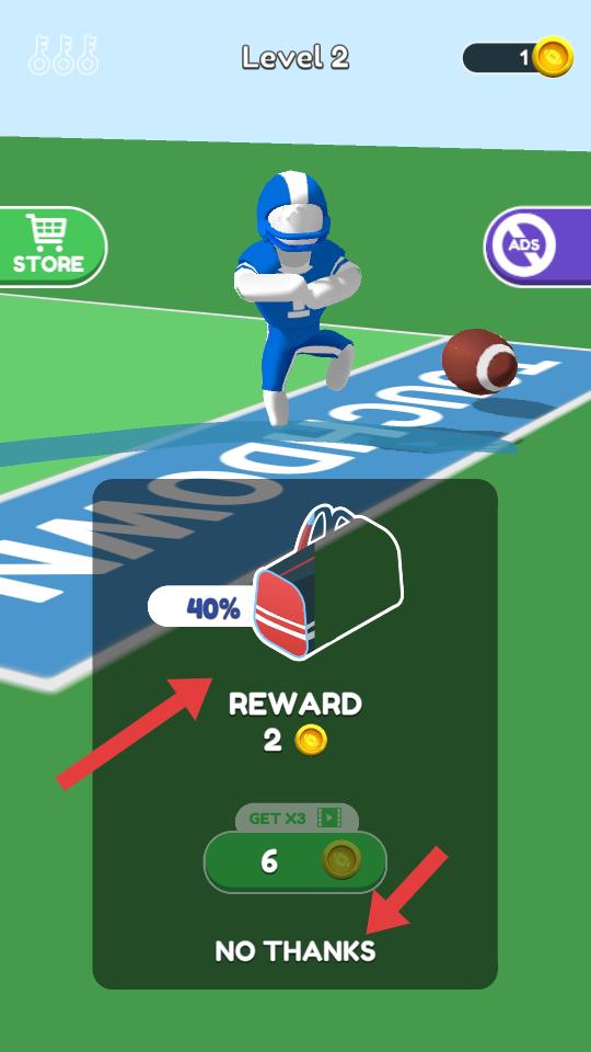 4、成功完成關(guān)卡后,會(huì)彈出獎(jiǎng)勵(lì)界面,顯示可獲得的金幣等獎(jiǎng)勵(lì),可選擇接受獎(jiǎng)勵(lì)或點(diǎn)擊NO THANKS跳過。
